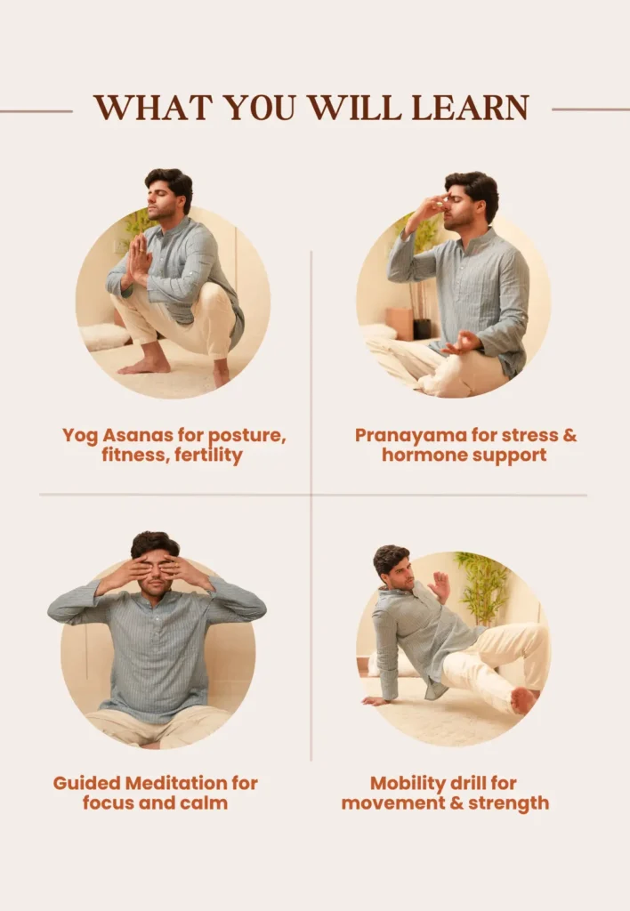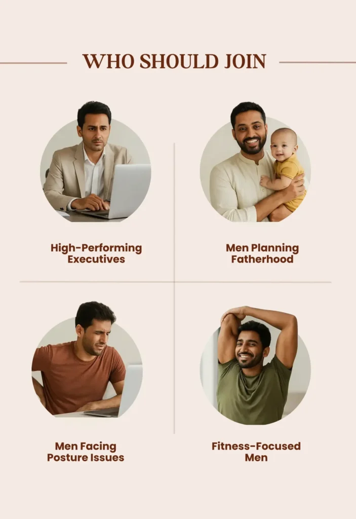 No, not at all. While fertility is a key focus, the practices also improve posture, digestion, sleep, energy, skin/hair health, and hormonal balance—making it ideal for any man in his 30s–40s looking to future-proof his health.